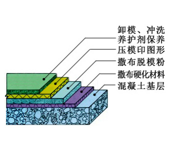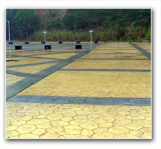 壓花壓模地坪即是用具有特制圖形的模板經(jīng)過一定工藝壓印地面成型的一種藝術地坪;圖案和顏色可任意組合,整體一次性壓印完成,使用無機顏料,色澤牢固持久,耐候性、防紫外線高,耐磨性好,防滑、防水、防腐,抗壓強度可達普通混凝土強度的3倍。